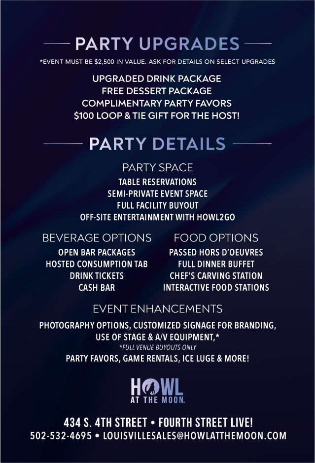 Don’t miss your chance to join the fun at Howl at the Moon Louisville. Call +1 502-532-4695 for reservations or just stop by to experience the magic for yourself!